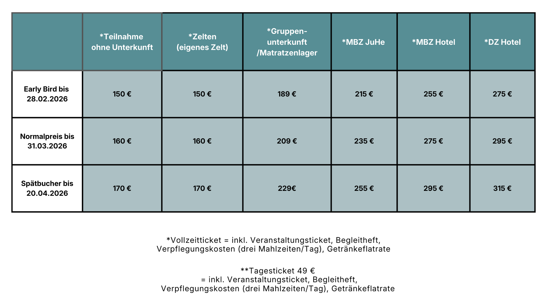 Preisübersicht